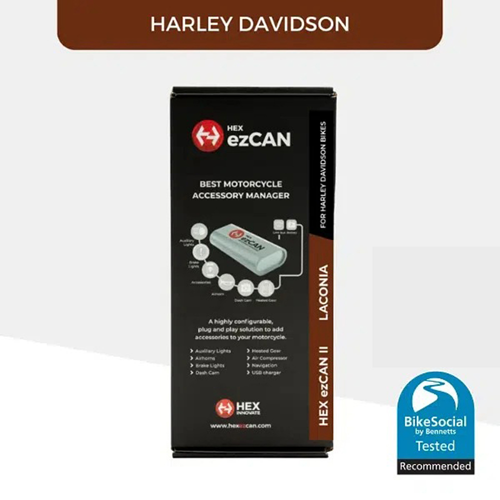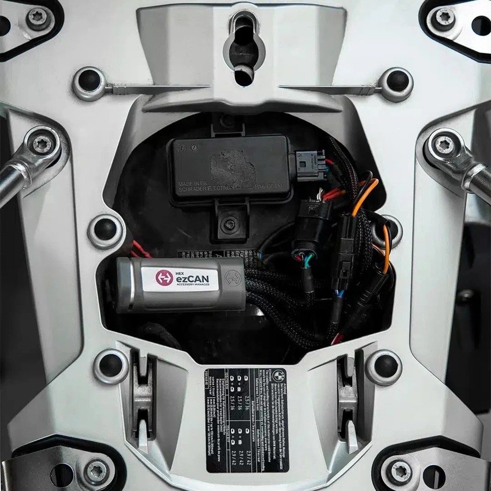 多くのアクセサリーメーカーは、HEX ezCANとシームレスに連携するように製品を設計しており、プラグアンドプレイでインストールできます。アクセサリーにHEX ezCANコネクタが付属していなくてもご安心ください。ezCANキットには4つのコネクタセットが含まれており、2線式または3線式のアクセサリーに簡単に電源を供給できます。ezCANがあれば、バイクに搭載されているほぼすべての電子アクセサリーに電源を供給し、操作することができます。