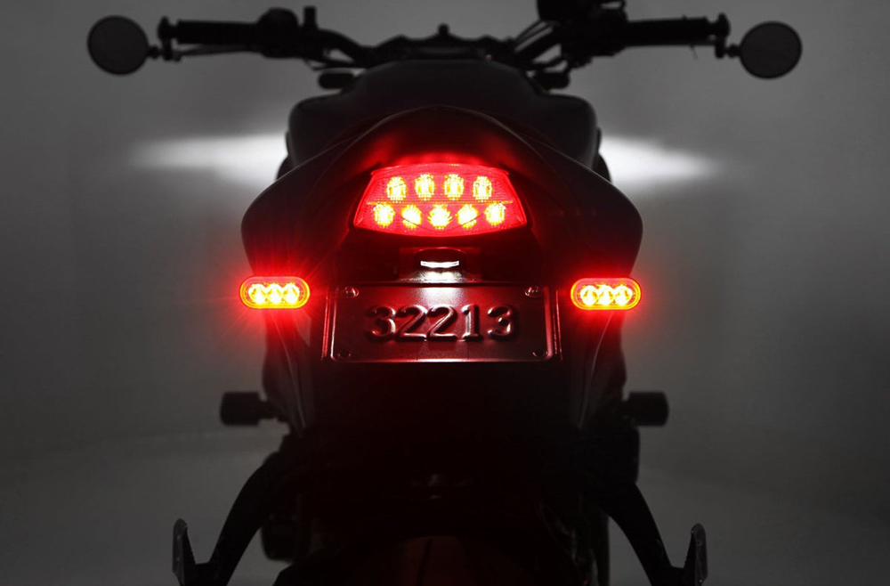 T3シグナルポッドのM8スタッドバージョンは、純正ウィンカーの交換用として設計されており、T3のサイズは薄型でコンパクトながらも高出力LEDによりアンバーシグナルライトは純正よりもはるかに明るく発光します。リア用のみ搭載されている赤色ブレーキライト回路により、他の補助ブレーキライトを追加することなく最大限の視認性を確保します。