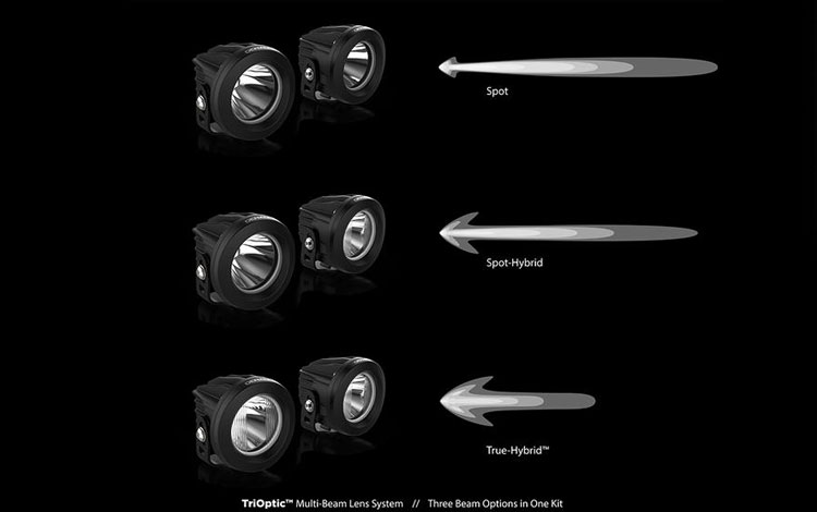 DR1 TriOptic Lens Kitは、霧や雨の状況での視認性を最大に引き出せるように設計されています。AmberとYellowの2色のレンズカラーはどちらも、水蒸気を反射して視認性を低下させる青色の周波数を光から遮断することで、霧や雨の中での視認性を高めます。このキットには、2つのスポットレンズと、2つのTrue-HybridTMレンズが含まれています。距離を最大にする場合には、2つのスポットレンズを使用し、50/50 True-HybridTMの場合には、2つのTrue-HybridTM レンズを使用するか、それぞれの1つずつを使用して、距離を維持しながら近距離フィルを追加するスポット、True-HybridTMをご使用いただけます。
